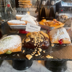 Starting with breakfast at The Vintage, where they are known for their beignets. I would order the Fancy Beignet Flight so I could try 3 different flavors and a coffee made with their vintage espresso, that has hints of caramel, toffee, darker red fruits, and bittersweet cacao.